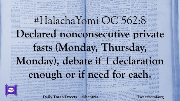 #HalachaYomi OC 562:8 Declared nonconsecutive private fasts (Monday, Thursday, Monday), debate if 1 declaration enough or if need for each.