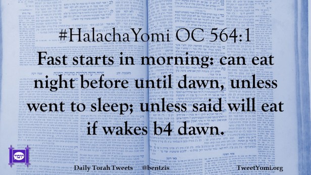 #HalachaYomi OC 564:1 Fast starts in morning: can eat night before until dawn, unless went to sleep; unless said will eat if wakes b4 dawn.