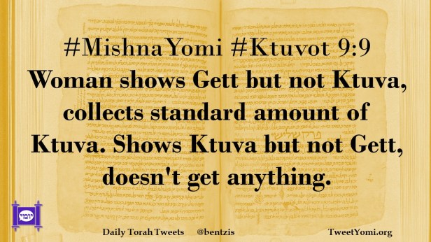 #MishnaYomi #Ktuvot 9:9 Woman shows Gett but not Ktuva, collects standard amount of Ktuva. Shows Ktuva but not Gett, doesn’t get anything.