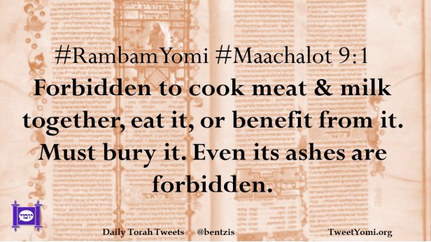#RambamYomi #Maachalot 9:1 Forbidden to cook meat & milk together, eat it, or benefit from it. Must bury it. Even its ashes are forbidden.