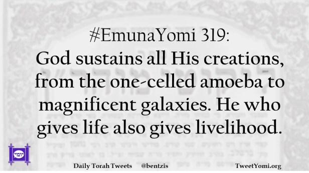 #EmunaYomi 319: God sustains all His creations, from the one-celled amoeba to magnificent galaxies. He who gives life also gives livelihood.