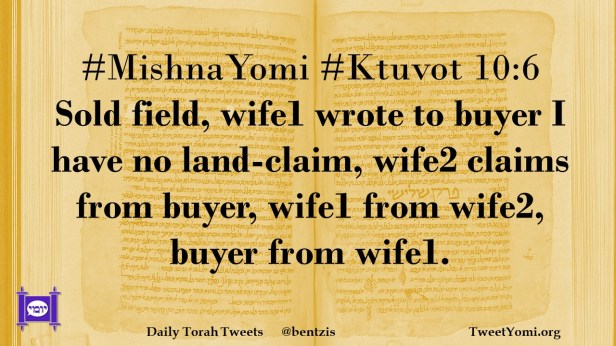 #MishnaYomi #Ktuvot 10:6 Sold field, wife1 wrote to buyer I have no land-claim, wife2 claims from buyer, wife1 from wife2, buyer from wife1.