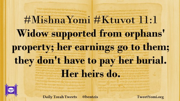 #MishnaYomi #Ktuvot 11:1 Widow supported from orphans’ property; her earnings go to them; they don’t have to pay her burial. Her heirs do.