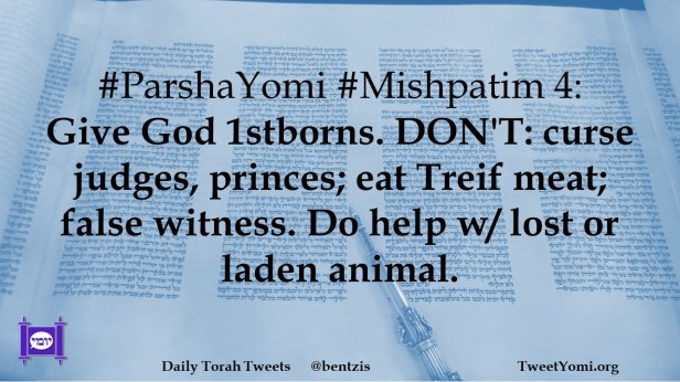 #ParshaYomi #Mishpatim 4: Give God 1stborns. DON’T: curse judges, princes; eat Treif meat; false witness. Do help w/ lost or laden animal.