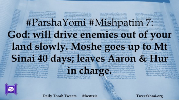#ParshaYomi #Mishpatim 7: God: will drive enemies out of your land slowly. Moshe goes up to Mt Sinai 40 days; leaves Aaron & Hur in charge.