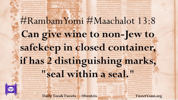 #RambamYomi #Maachalot 13:8 Can give wine to non-Jew to safekeep in closed container, if has 2 distinguishing marks, “seal within a seal.”