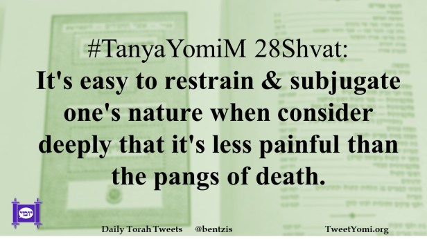 #TanyaYomiM 28Shvat: It’s easy to restrain & subjugate one’s nature when consider deeply that it’s less painful than the pangs of death.
