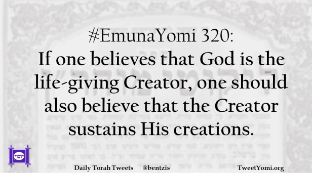 #EmunaYomi 320: If one believes that God is the life-giving Creator, one should also believe that the Creator sustains His creations.