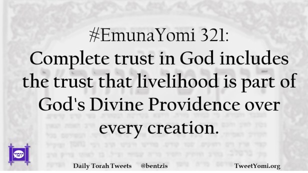 #EmunaYomi 321: Complete trust in God includes the trust that livelihood is part of God’s Divine Providence over every creation.