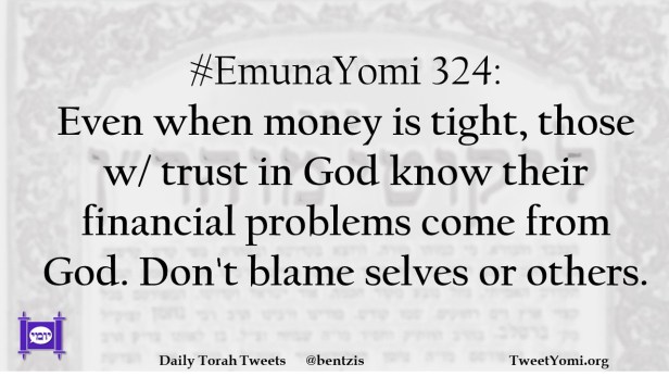 #EmunaYomi 324: Even when money is tight, those w/ trust in God know their financial problems come from God. Don’t blame selves or others.