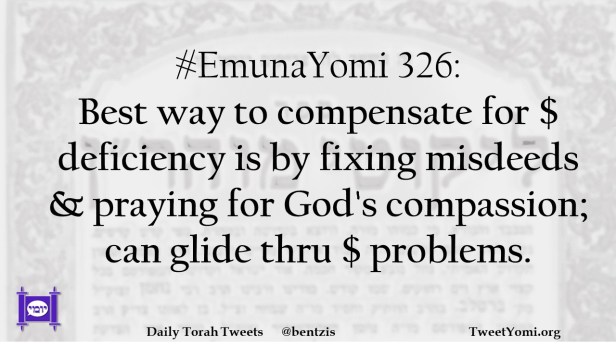 #EmunaYomi 326: Best way to compensate for $ deficiency is by fixing misdeeds & praying for God’s compassion; can glide thru $ problems.