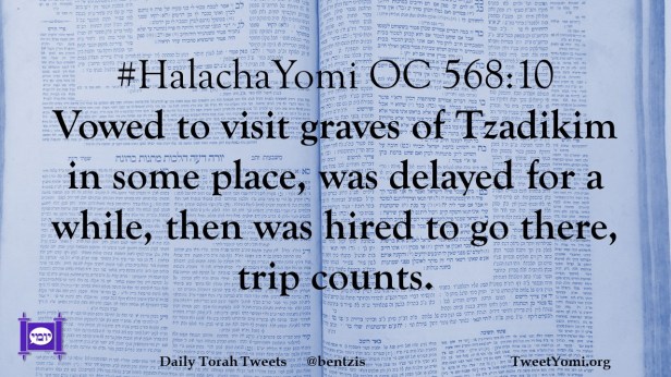 #HalachaYomi OC 568:10 Vowed to visit graves of Tzadikim in some place, was delayed for a while, then was hired to go there, trip counts.
