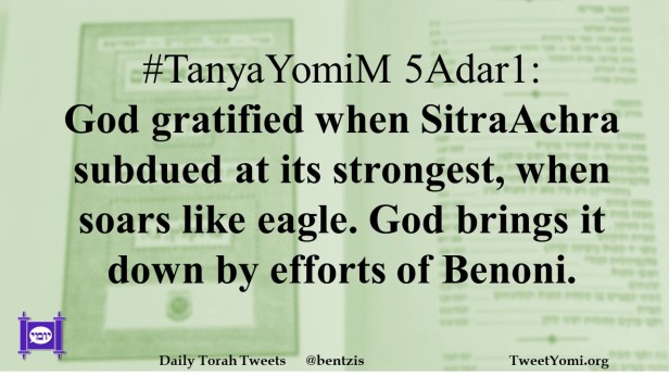 #TanyaYomiM 5Adar1: God gratified when SitraAchra subdued at its strongest, when soars like eagle. God brings it down by efforts of Benoni.