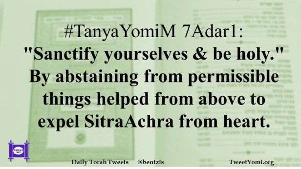 #TanyaYomiM 7Adar1: “Sanctify yourselves & be holy.” By abstaining from permissible things helped from above to expel SitraAchra from heart.