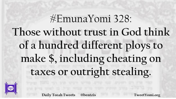 #EmunaYomi 328: Those without trust in God think of a hundred different ploys to make $, including cheating on taxes or outright stealing.