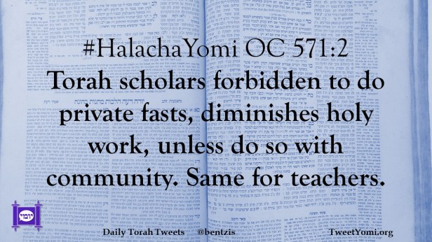 #HalachaYomi OC 571:2 Torah scholars forbidden to do private fasts, diminishes holy work, unless do so with community. Same for teachers.