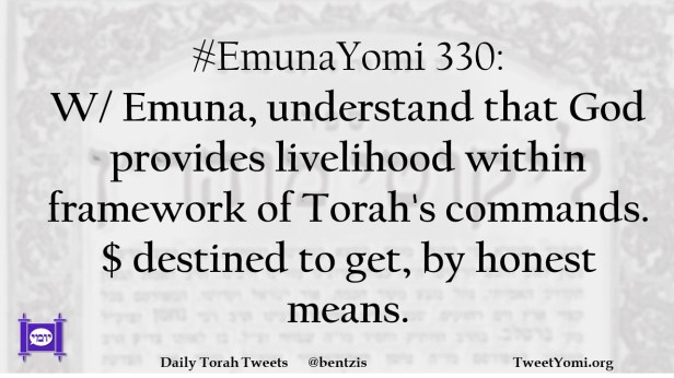 #EmunaYomi 330: W/ Emuna, understand that God provides livelihood within framework of Torah’s commands. $ destined to get, by honest means.