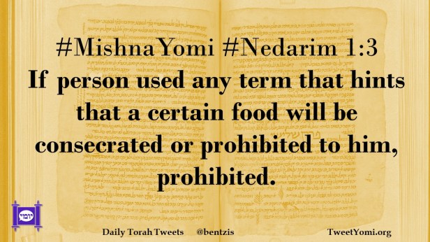 #MishnaYomi #Nedarim 1:3 If person used any term that hints that a certain food will be consecrated or prohibited to him, prohibited.