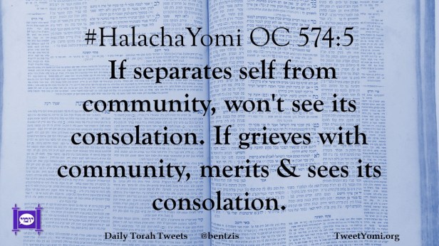 #HalachaYomi OC 574:5 If separates self from community, won’t see its consolation. If grieves with community, merits & sees its consolation.