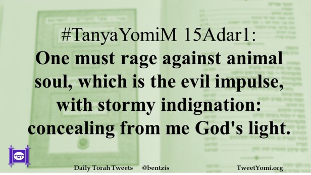 #TanyaYomiM 15Adar1: One must rage against animal soul, which is the evil impulse, with stormy indignation: concealing from me God’s light.