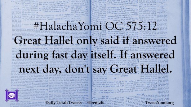 #HalachaYomi OC 575:12 Great Hallel only said if answered during fast day itself. If answered next day, don’t say Great Hallel.