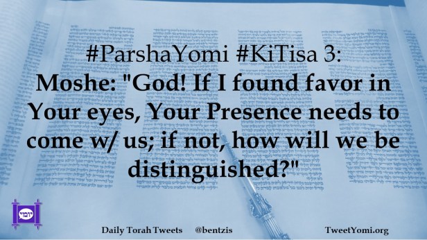 #ParshaYomi #KiTisa 3: Moshe: “God! If I found favor in Your eyes, Your Presence needs to come w/ us; if not, how will we be distinguished?”