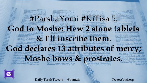 #ParshaYomi #KiTisa 5: God to Moshe: Hew 2 stone tablets & I’ll inscribe them. God declares 13 attributes of mercy; Moshe bows & prostrates.