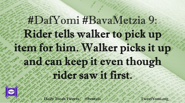 #DafYomi #BavaMetzia 9: Rider tells walker to pick up item for him. Walker picks it up and can keep it even though rider saw it first.