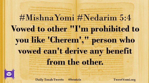 #MishnaYomi #Nedarim 5:4 Vowed to other “I’m prohibited to you like ‘Cherem’,” person who vowed can’t derive any benefit from the other.