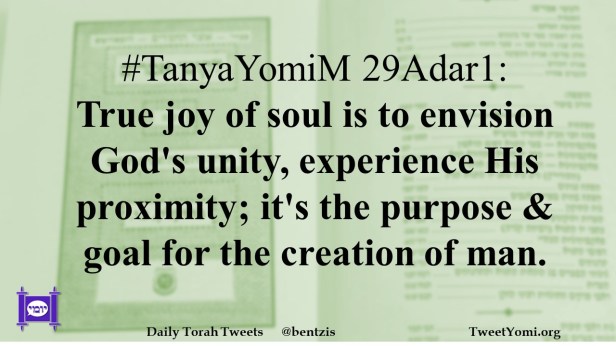 #TanyaYomiM 29Adar1: True joy of soul is to envision God’s unity, experience His proximity; it’s the purpose & goal for the creation of man.