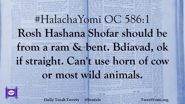 #HalachaYomi OC 586:1 Rosh Hashana Shofar should be from a ram & bent. Bdiavad, ok if straight. Can’t use horn of cow or most wild animals.
