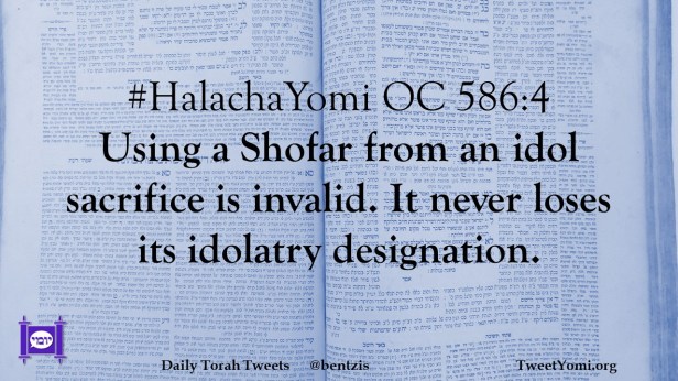 HalachaYomi #HalachaYomi OC 586:4 Date: March 14, 2024Author: netanelspitz #HalachaYomi OC 586:4 Using a Shofar from an idol sacrifice is invalid. It never loses its idolatry designation. Share this: Share on X (Opens in new window) X Share on Facebook (Opens in new window) Facebook Like Loading... Related