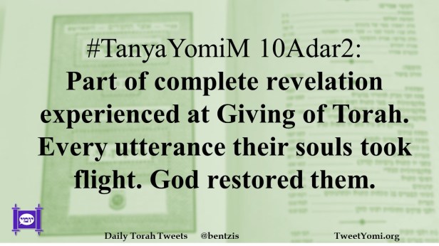 #TanyaYomiM 10Adar2: Part of complete revelation experienced at Giving of Torah. Every utterance their souls took flight. God restored them.