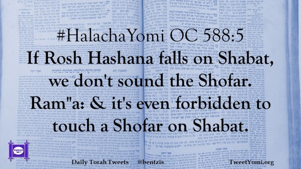 #HalachaYomi OC 588:5 If Rosh Hashana falls on Shabat, we don’t sound the Shofar. Ram”a: & it’s even forbidden to touch a Shofar on Shabat.