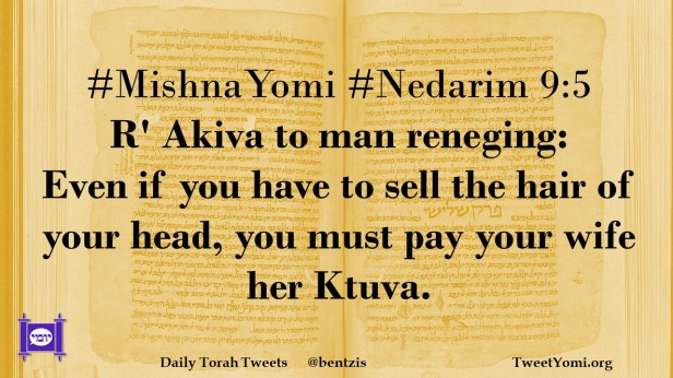 #MishnaYomi #Nedarim 9:5 R’ Akiva to man reneging: Even if you have to sell the hair of your head, you must pay your wife her Ktuva.