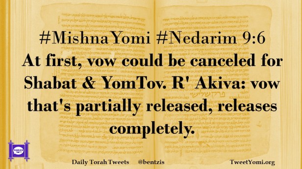 #MishnaYomi #Nedarim 9:6 At first, vow could be canceled for Shabat & YomTov. R’ Akiva: vow that’s partially released, releases completely.