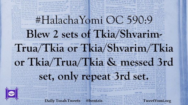#HalachaYomi OC 590:9 Blew 2 sets of Tkia/Shvarim-Trua/Tkia or Tkia/Shvarim/Tkia or Tkia/Trua/Tkia & messed 3rd set, only repeat 3rd set.
