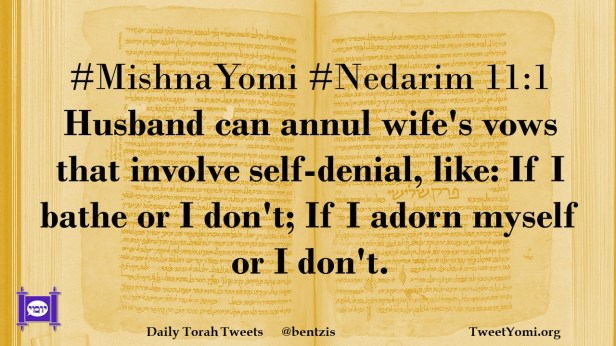 #MishnaYomi #Nedarim 11:1 Husband can annul wife’s vows that involve self-denial, like: If I bathe or I don’t; If I adorn myself or I don’t.