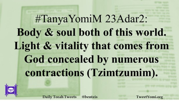 #TanyaYomiM 23Adar2: Body & soul both of this world. Light & vitality that comes from God concealed by numerous contractions (Tzimtzumim).