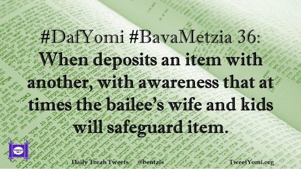 #DafYomi #BavaMetzia 36: When deposits an item with another, with awareness that at times the bailee’s wife and kids will safeguard item.