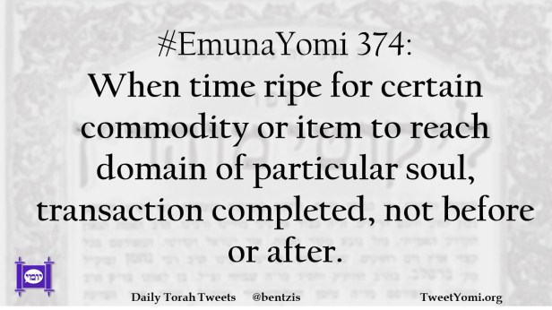 #EmunaYomi 374: When time ripe for certain commodity or item to reach domain of particular soul, transaction completed, not before or after.