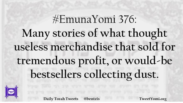 #EmunaYomi 376: Many stories of what thought useless merchandise that sold for tremendous profit, or would-be bestsellers collecting dust.
