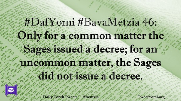 #DafYomi #BavaMetzia 46: Only for a common matter the Sages issued a decree; for an uncommon matter, the Sages did not issue a decree.