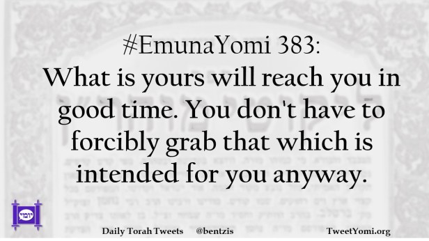 #EmunaYomi 383: What is yours will reach you in good time. You don’t have to forcibly grab that which is intended for you anyway.