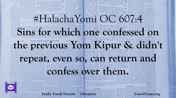 #HalachaYomi OC 607:4 Sins for which one confessed on the previous Yom Kipur & didn’t repeat, even so, can return and confess over them.