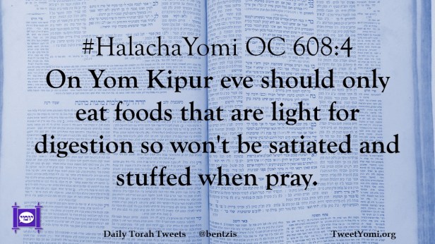 #HalachaYomi OC 608:4 On Yom Kipur eve should only eat foods that are light for digestion so won’t be satiated and stuffed when pray.