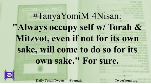 #TanyaYomiM 4Nisan: “Always occupy self w/ Torah & Mitzvot, even if not for its own sake, will come to do so for its own sake.” For sure.