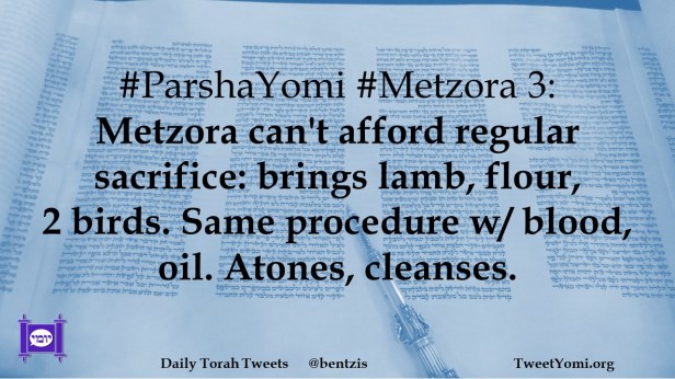 #ParshaYomi #Metzora 3: Metzora can’t afford regular sacrifice: brings lamb, flour, 2 birds. Same procedure w/ blood, oil. Atones, cleanses.