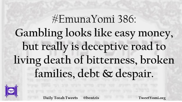 #EmunaYomi 386: Gambling looks like easy money, but really is deceptive road to living death of bitterness, broken families, debt & despair.