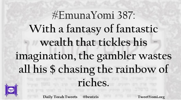 #EmunaYomi 387: With a fantasy of fantastic wealth that tickles his imagination, the gambler wastes all his $ chasing the rainbow of riches.